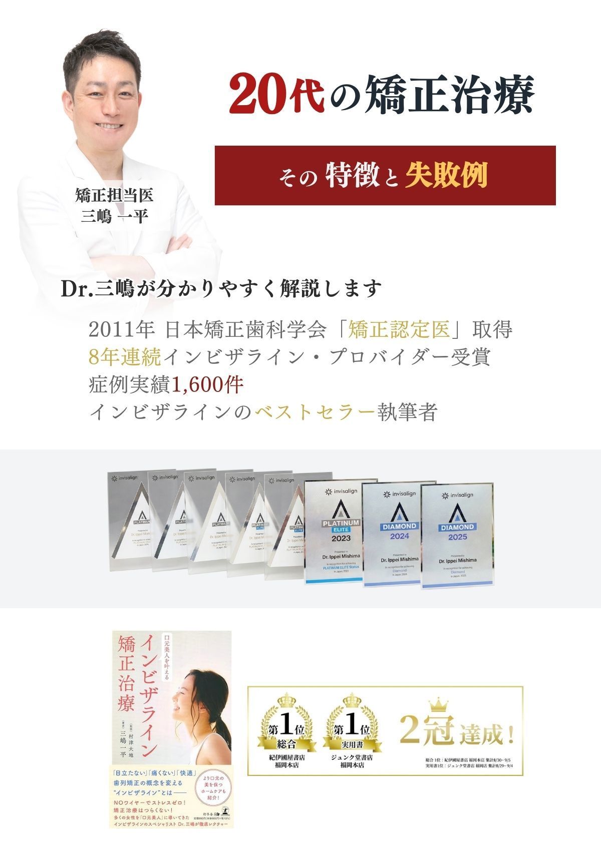 無料の矯正相談を実施中。累計1,600症例の実績を持つ、最高クラス「ダイヤモンド」認定のDr.三嶋に、ぜひお気軽にご相談ください。