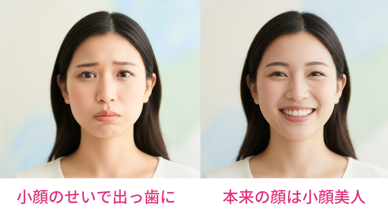 小顔の方は顎が小さいので、歯を動かすためのスペースがもともと限られています。出っ歯の矯正は、前に出た前歯を引っ込める治療ですが、引っ込めるには引っ込めたい分だけのスペースが必要です。