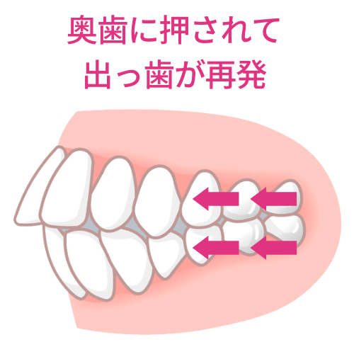 そのため治療後も前歯が奥歯から押され続けます。