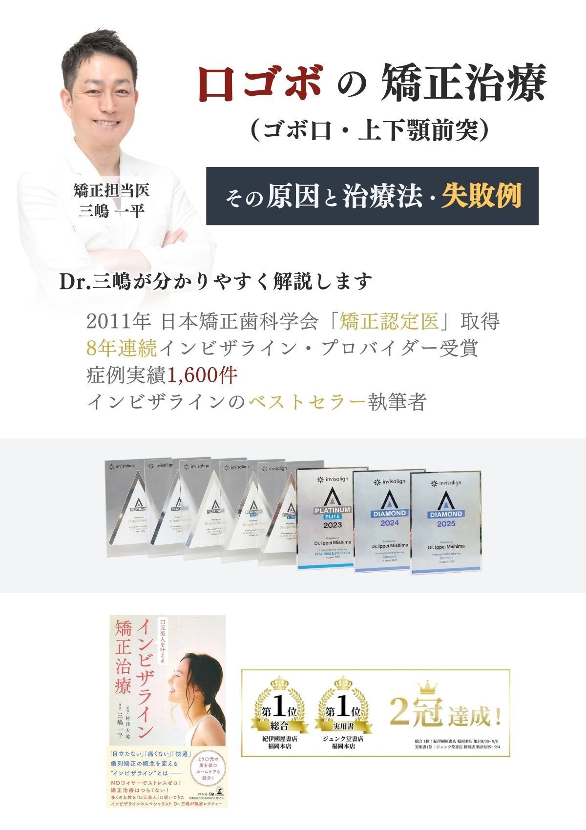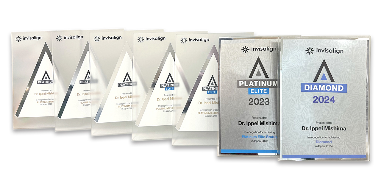 私が手がけた矯正治療の実績は累計で1,600症例にのぼり、インビザライン社から最高クラスの「ダイヤモンドプロバイダー」に認定されております。