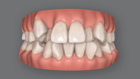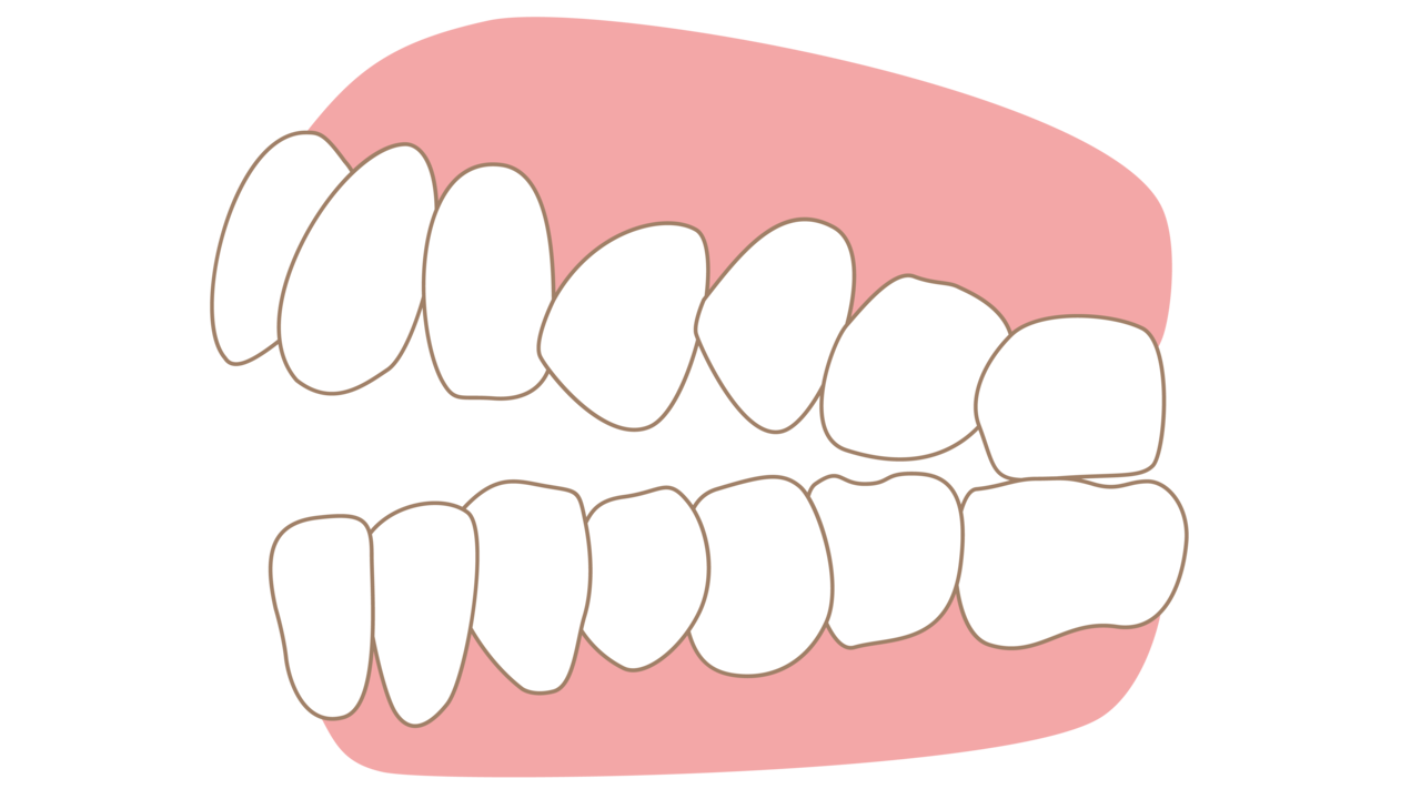 狭いスペースに歯を詰め込むため、歯が重なり合って叢生(ガタガタ)になってしまうのです。