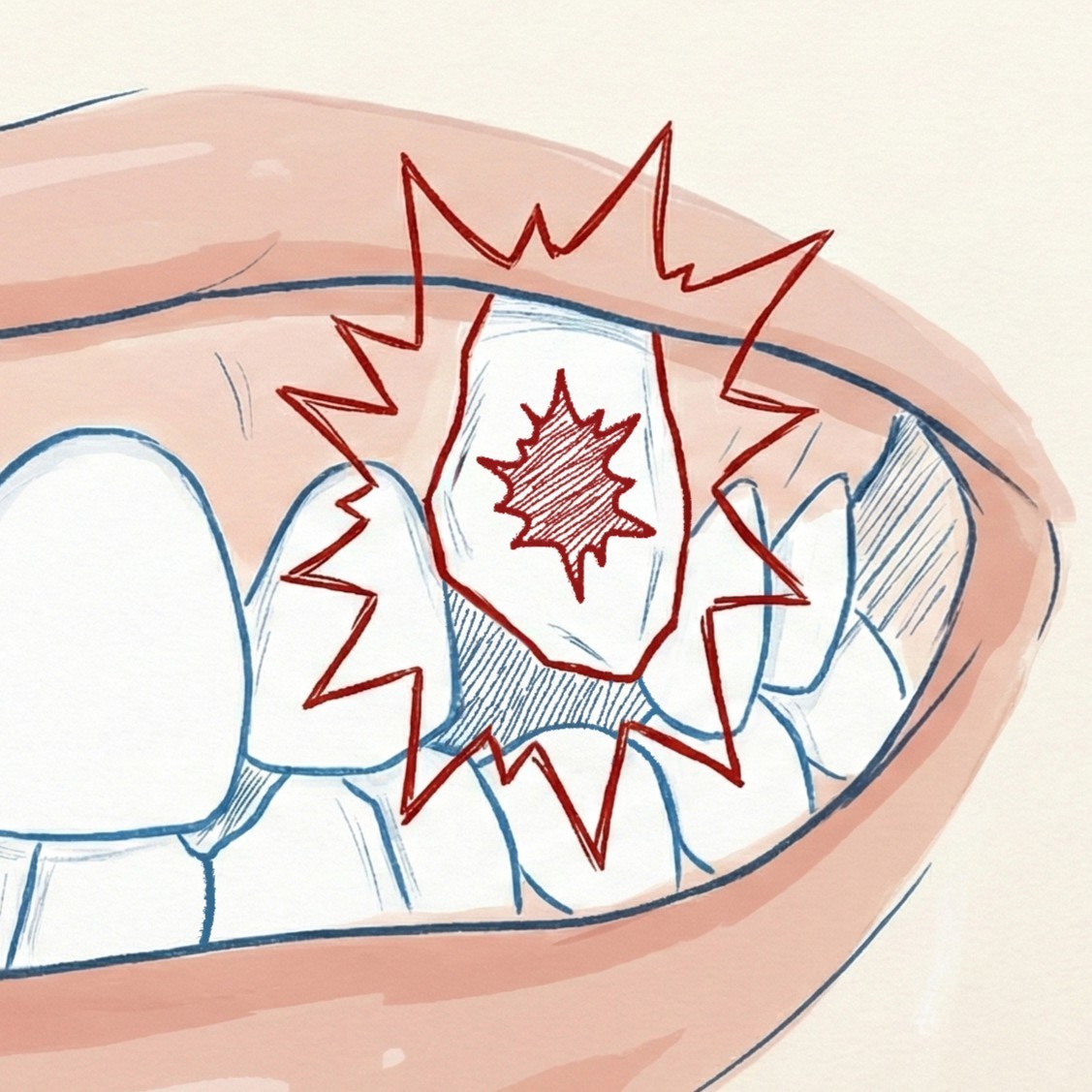転んだり、顔をぶつけたりした際に、飛び出している八重歯が唇を切ったり、口周りのケガにつながりやすいリスクがあります。ひどい場合には歯が折れることも。