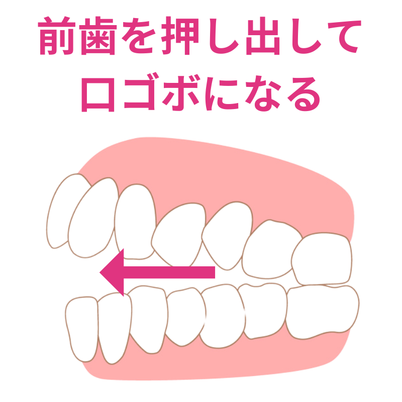 八重歯が邪魔で唇が閉じにくくてお口の中が乾燥(ドライマウス)することや、歯磨きの磨き残しにより、細菌が繁殖し、口臭が発生しやすくなります。