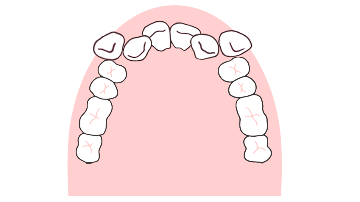 あごが小さくてスペースが足りない場合、先に生えてきた前歯と奥歯がスペースを使い切ってしまいます。